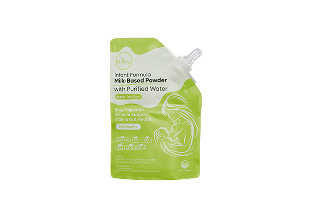 Our patented pouch is uniquely designed with two separate compartments—one holding purified water and the other containing premium baby formula powder. With a simple squeeze, the inner seal breaks to instantly mix the formula fresh, right when you need it. Each pouch also includes a built-in nipple under the cap, so there’s nothing extra to carry or assemble. It’s a smarter, cleaner, and more convenient way to feed your baby on the go.